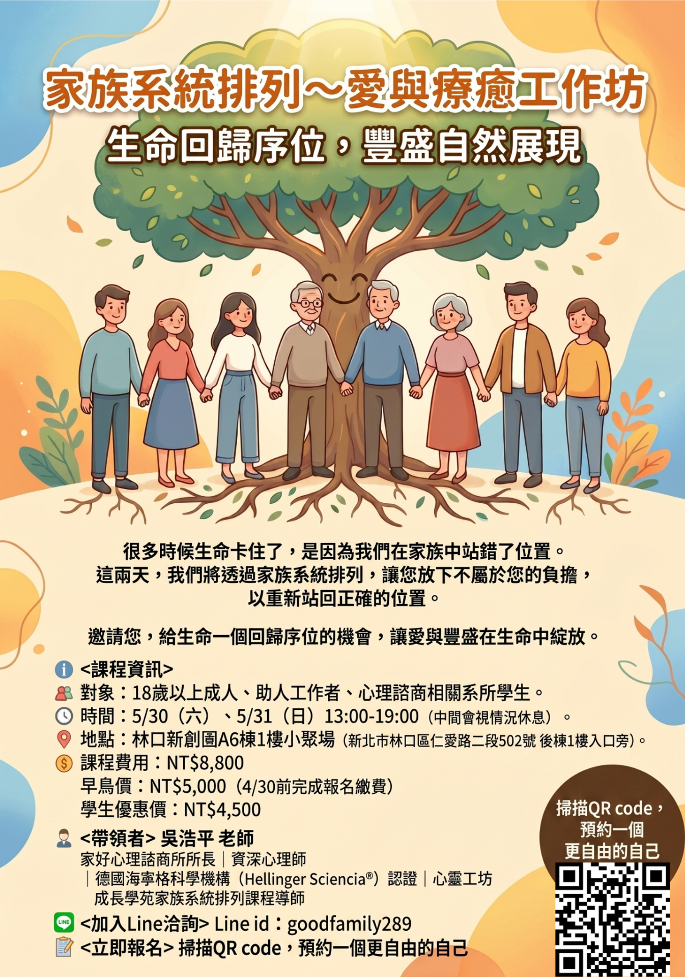 在這兩天的時光,我們將透過家庭系統排列,陪您找回那個最舒服、也最正確的位置。讓原本卡住的生命能量重新流動,並重新感受愛、金錢,與生命如何重啟正向循環。